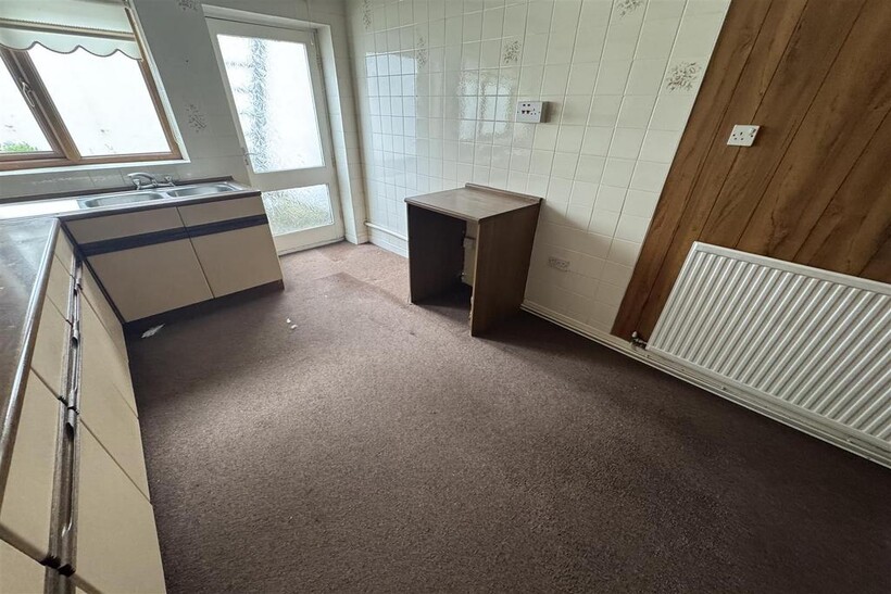Kitchen - Radiator. Wall and base units with matching worksurfaces. Hob. Oven. Sink unit.
