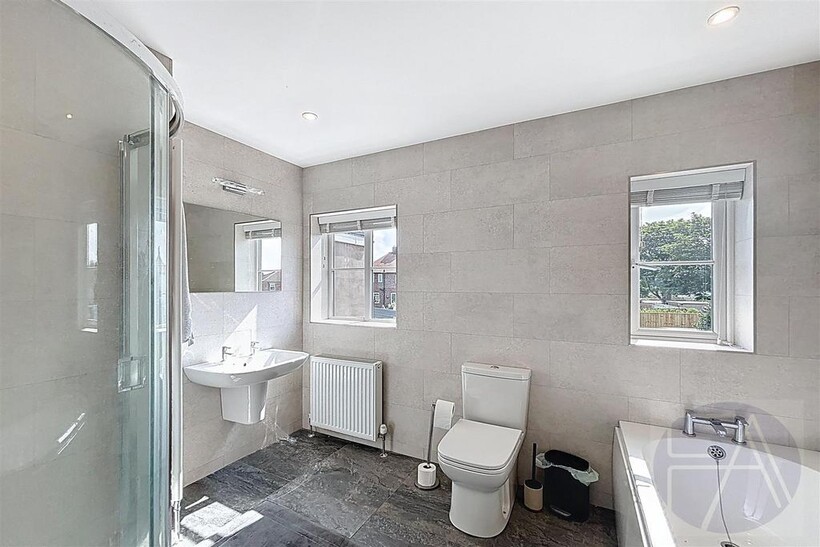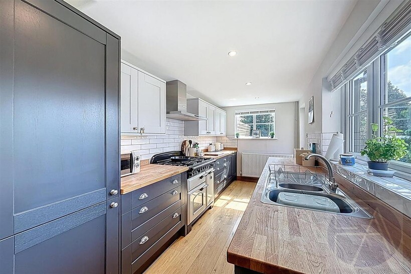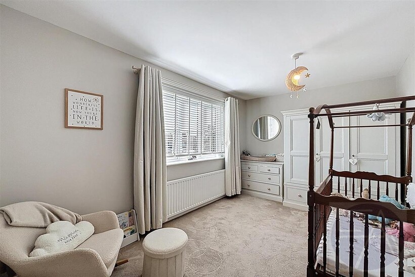 Upstairs, the property offers three well-proportioned bedrooms (one with built-in wardrobes), a contemporary four-piece family bathroom, and additional storage on the landing.