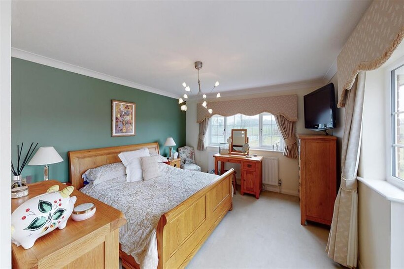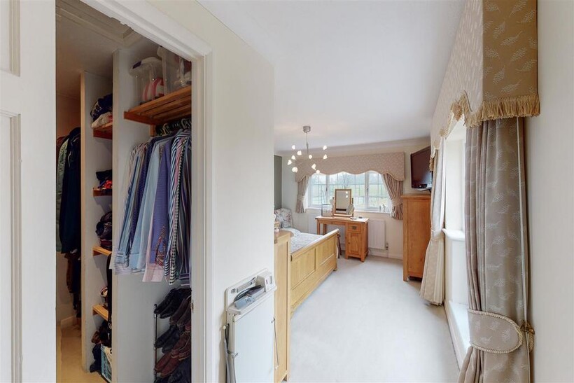 Master Bedroom - 4.26m x 3.93m (14'0" x 12'11") - Walk-in wardrobe with shelving and hanging rails. Window to the rear and side aspect, with double glazed doors leading to balcony with views over the rear garden and open fields to the rear.
