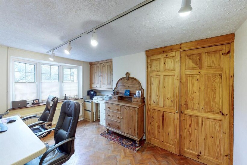 Study - 4.44m x 3.48m (14'7" x 11'5") - Bow window to front aspect, built in storage cupboards.