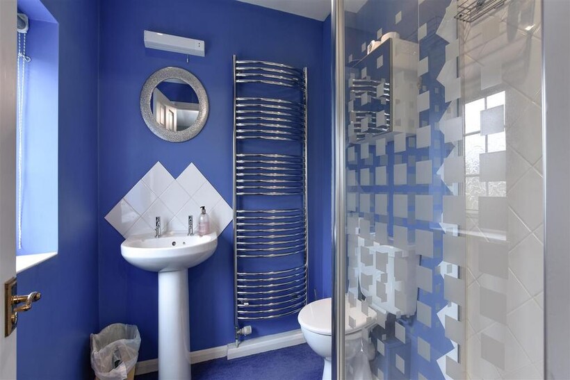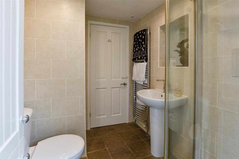 En-Suite - Single tiled shower cubicle, low level WC and hand wash basin. Heated towel rail and window to the front aspect.