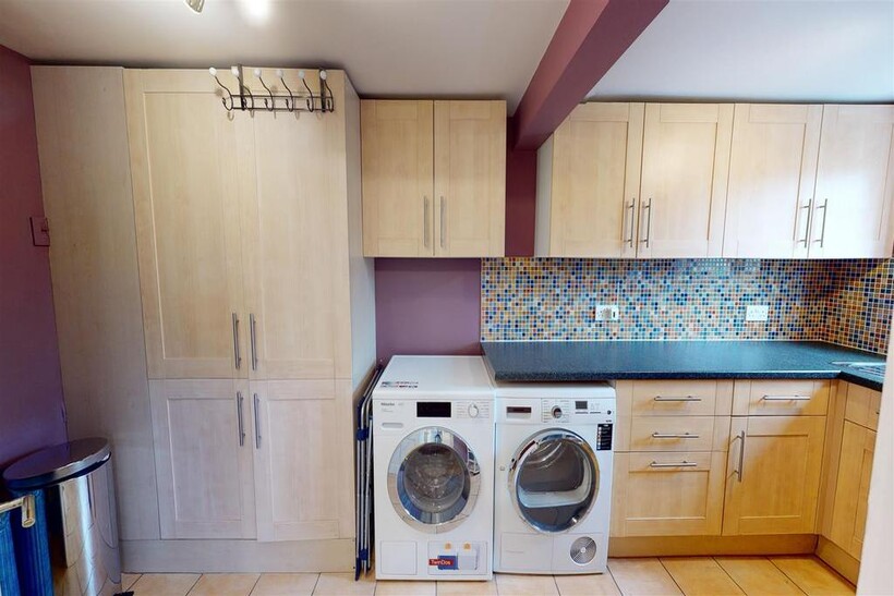 Utility Room - 3.16m x 1.94m (10'4" x 6'4") - Wide selection of wall and base units including full length units housing oil fired boiler. Stainless steel sink and window to front aspect.