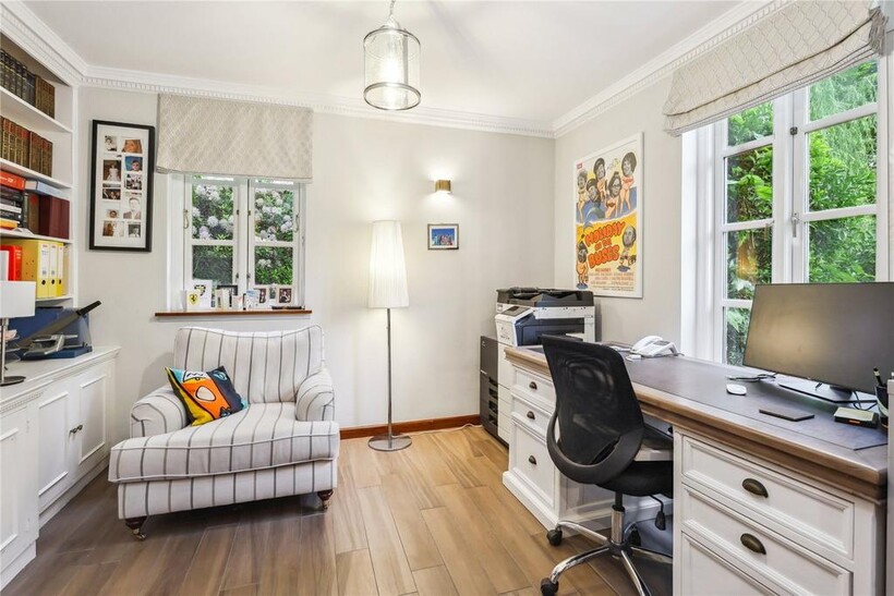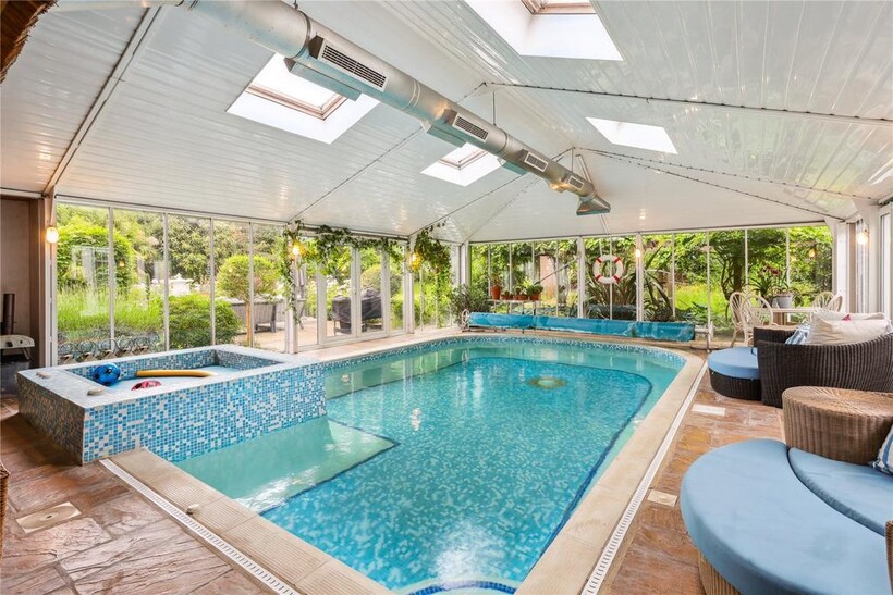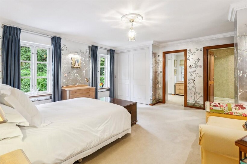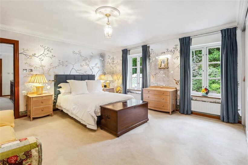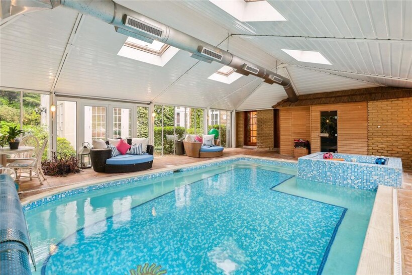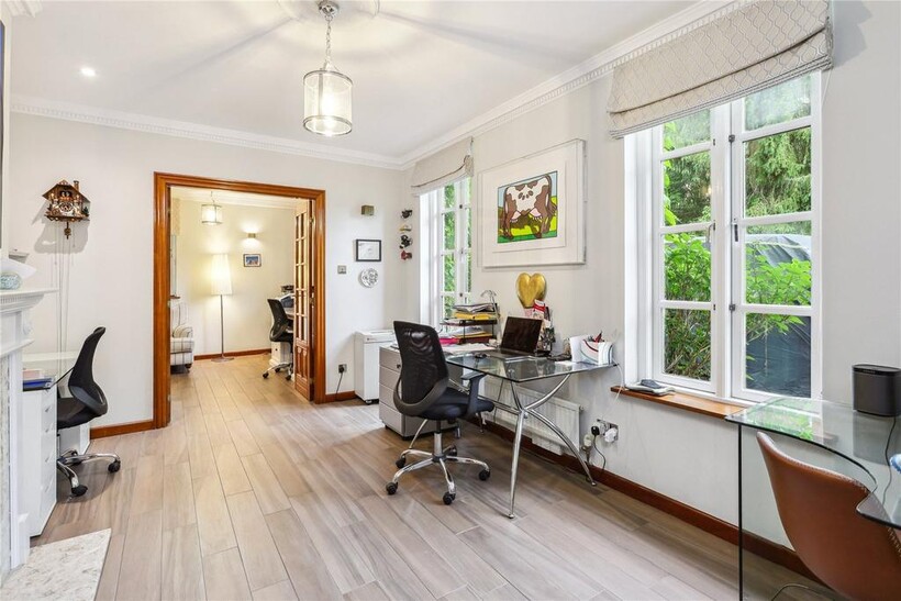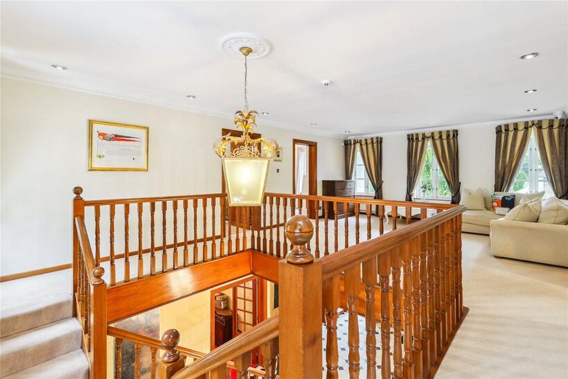 An imposing family residence situated on a wide plot in the heart of the St George's Hill Private Estate, with separate staff accommodation and leisure facilities. EPC C - Council Tax HAshford House is a delightful detached family home centrally located in the heart of St George's Hill with accommodation extending to just over 7000 sq ft. This handsome home has a lovely flow of accommodation with an impressive entrance hall and the layout of the ground floor accommodation is excellent for modern family living. To one side of the house is the large formal dining room and office and to the rear of the property is the drawing room, which is a particularly bright room due to the orangery style roof light ceiling and doors, affording delightful views over the rear gardens. To one side of this room there is a splendid antique style fireplace surround. To the other side of the house is the central core of the house in the form of the large kitchen/breakfast room, leading through to the family room, which again is a particularly bright room with an array of windows and roof light ceiling, again with excellent views over the rear gardens. Also from the kitchen there is direct access through to the superb indoor swimming pool complex, complete with Jacuzzi and sauna. Upstairs, provides six separate bedrooms, the master bedroom has its own dressing room and full en suite bathroom, and the guest bedroom also has en suite facilities. The four further bedrooms are at the other end of the house and are served by a separate shower room and bathroom.