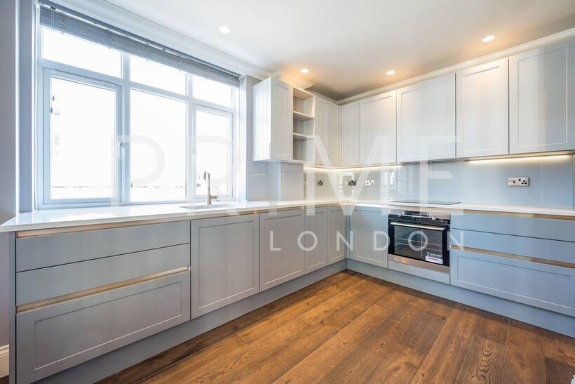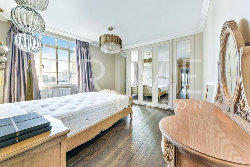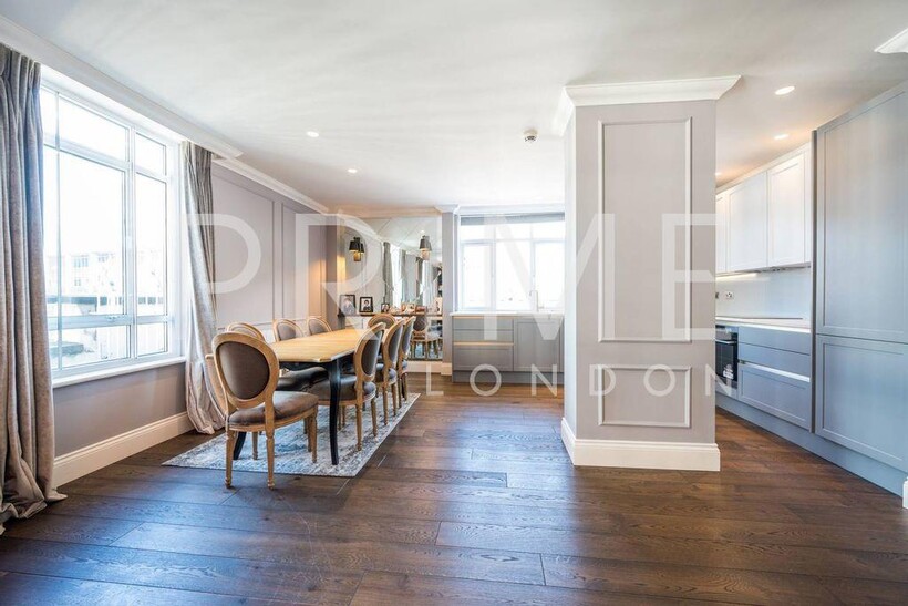 This refurbished three bedroom apartment of 1,150 sq ft (106.84 sqm) is offered on a fully furnished basis, benefits from a large wrap around terrace, and is available to rent through Prime London in County Hall Apartments, South Bank. The property also comes with a secure parking space.