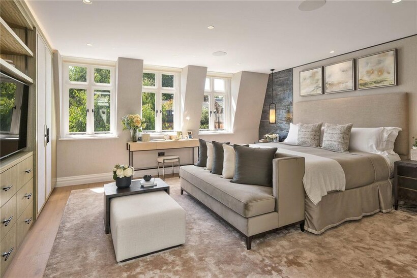 Each of the six bathrooms is finished to a luxurious specification, with sleek fittings and high-quality materials. The five spacious bedrooms include a principal suite with en suite and ample built-in storage.