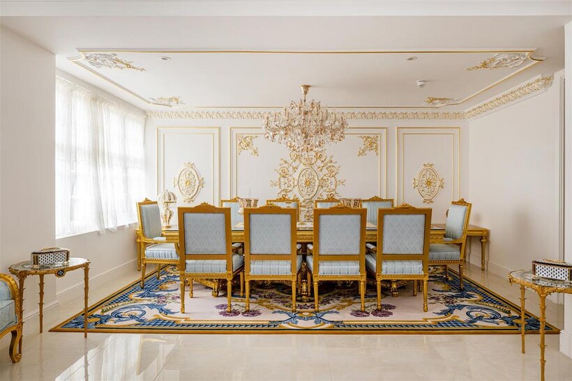 An elegantly crafted staircase leads down to the lower ground floor and the sensational leisure complex, with 11m swimming pool, hot tub, relaxation zone, glass walled gymnasium and steam room. There is also separate staff accommodation, a utility room and a second kitchen.