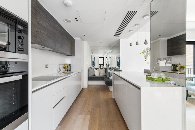 50 Kensington Gardens Square is a modern boutique development of 30 luxury apartments, converted from the former Compass House office building in 2020. The building offers 24‑hour concierge, secure underground parking, cycle storage and two passenger lifts.This immaculately presented two-bedroom, two-bathroom apartment features a bright and spacious open-plan kitchen and living area with Miele appliances, solid wood flooring with underfloor heating, excellent storage throughout and an integrated air cooling system.