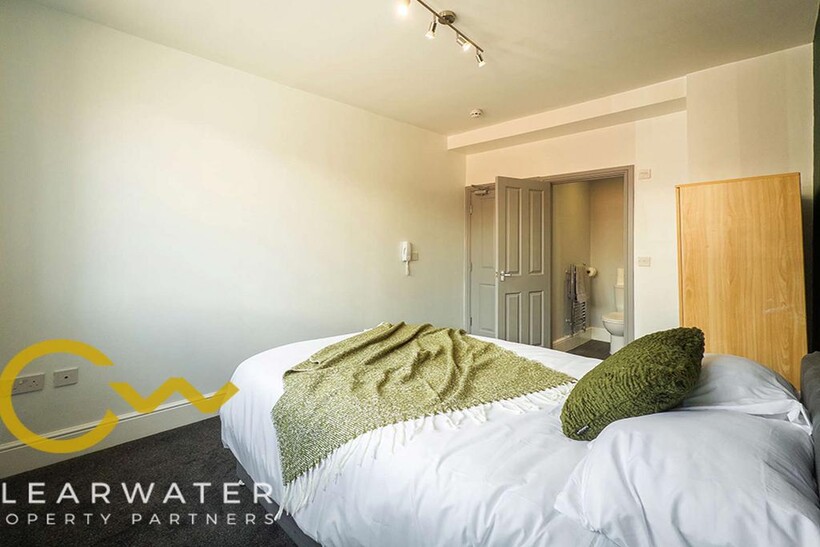 Light, bright double room with en suite bathroom in shared house , suitable for 1 person, close to all shops, theatre, hospital, transport and road links.Enjoy being part of a shared house with a communal lounge and two shared kitchens.