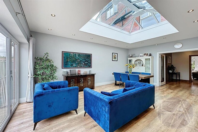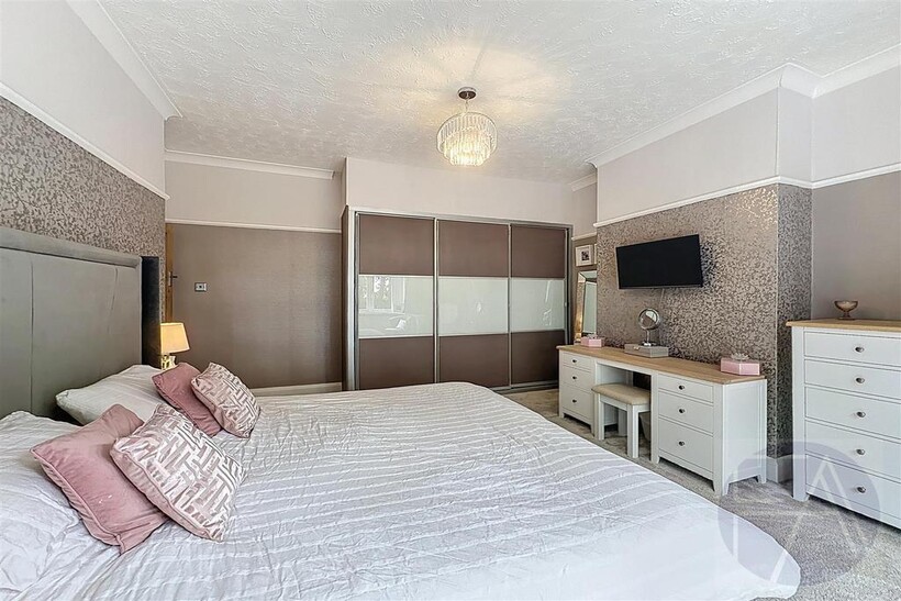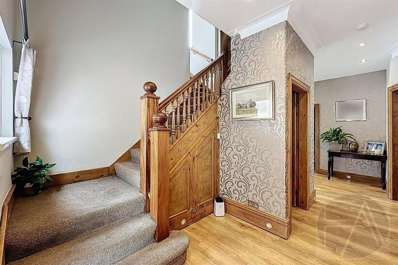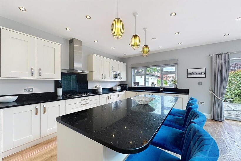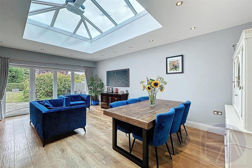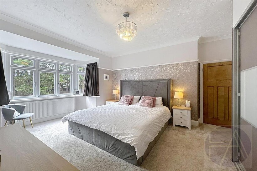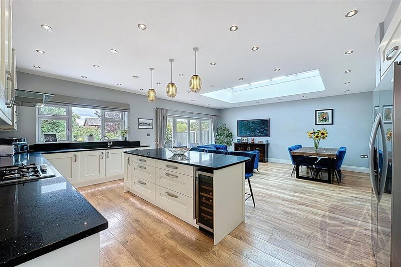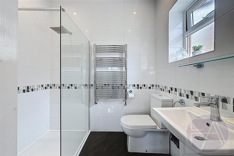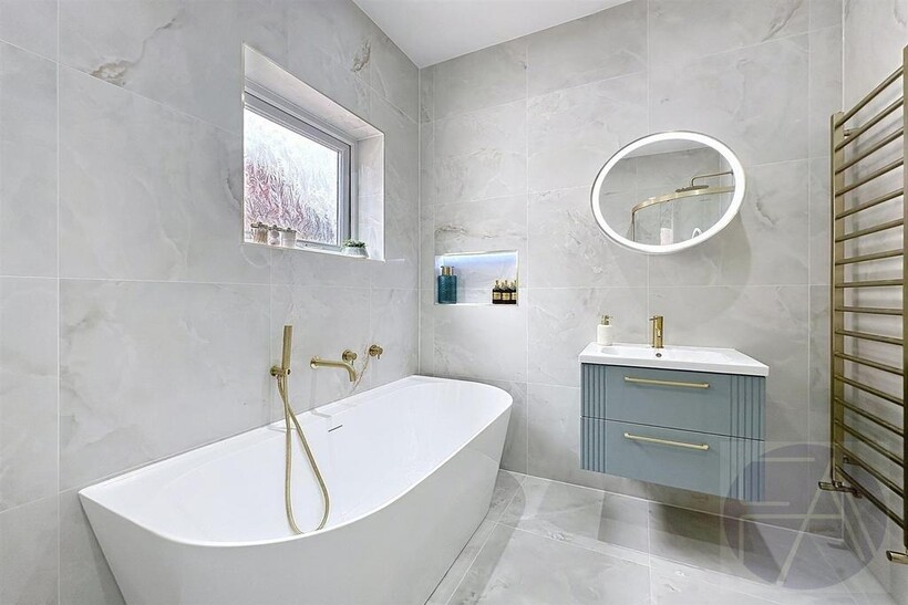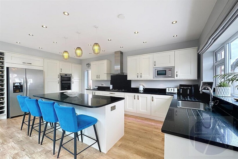 Upstairs, the first floor features four well-proportioned bedrooms—one with a bay window and another with a modern en suite shower room—alongside a sleek four-piece family bathroom.