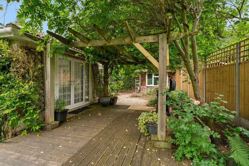 Garden space surrounding the rear of the property