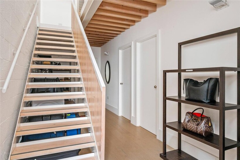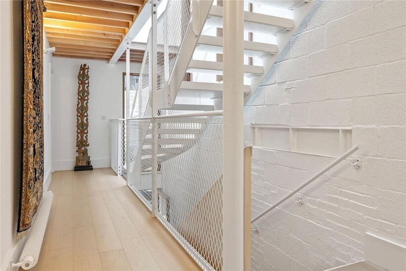 A refined and pared back palette of solid douglas fir and white steel makes for a dramatic effect. The white steel continues throughout the house with bespoke winding staircase cantilevered from the main structural beams.