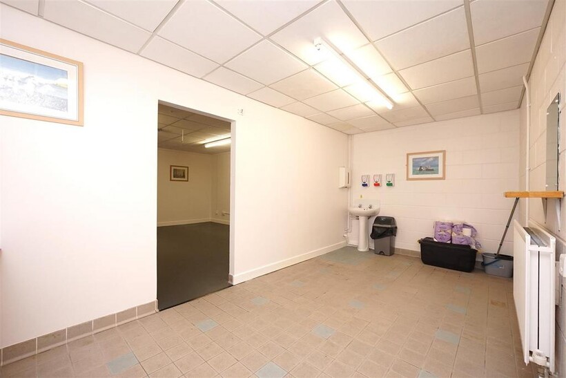 Adjoining / Hall - 5.49m x 2.59m (18 x 8'6) - Double radiator and thermostat, electric power points with basin and pedestal. Fluorescent light, suspended ceiling. Open access into the treatment room.