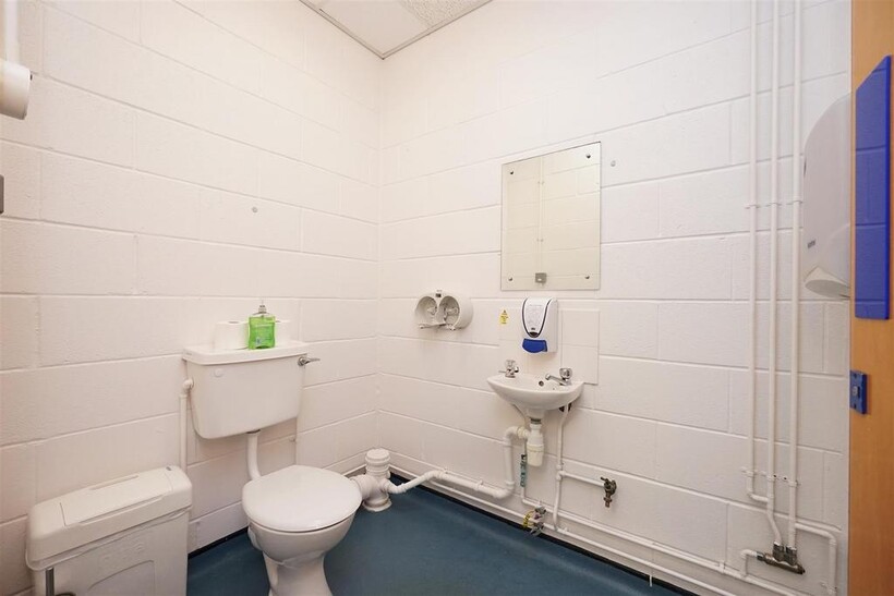 Treatment Room / Office - 5.18m x 5.49m (17 x 18) - External fire door, suspended ceiling, fluorescent light, central heating radiator, base unit with stainless steel sink.