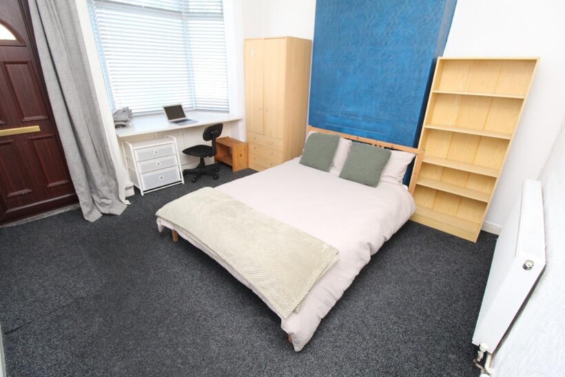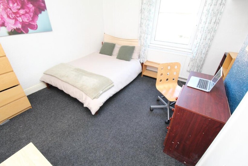 - Double bedroom in 4 bedroom house, complete with bed, mattress, study desk and chair, wardrobe and bed side table.