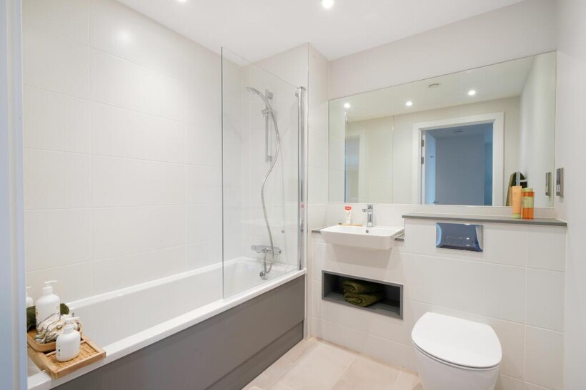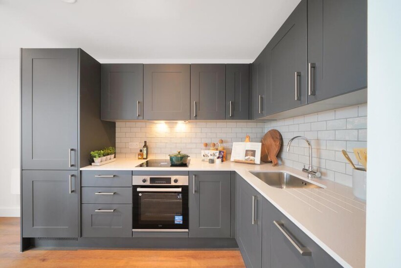 Integrated kitchens feature energy-efficient Beko appliances including an oven, an induction hob, dishwasher and come with plenty of cupboard space. The bedroom has built-in wardrobes and your washer-dryer is conveniently tucked away in a utilities cupboard. This fully-furnished apartment comes with everything you need to help you feel at home right away.