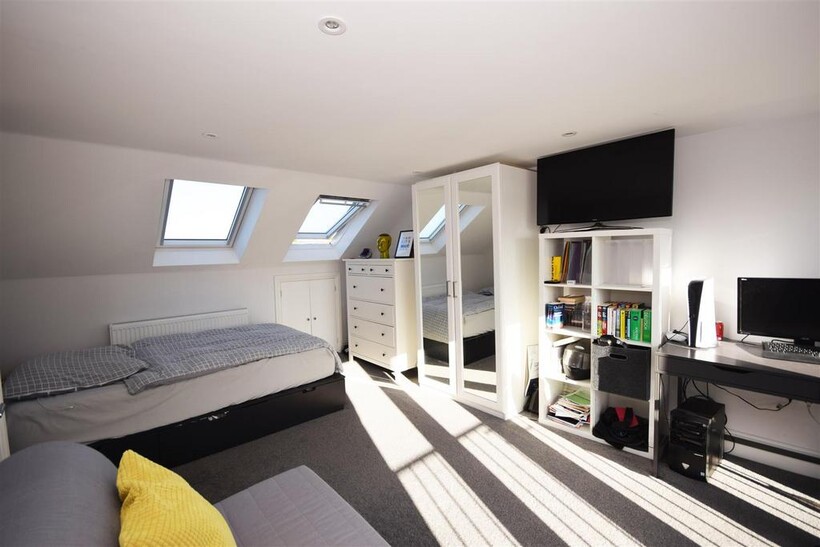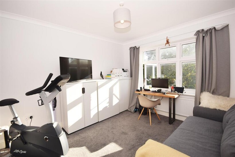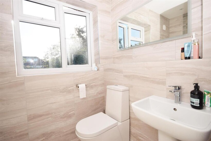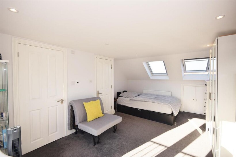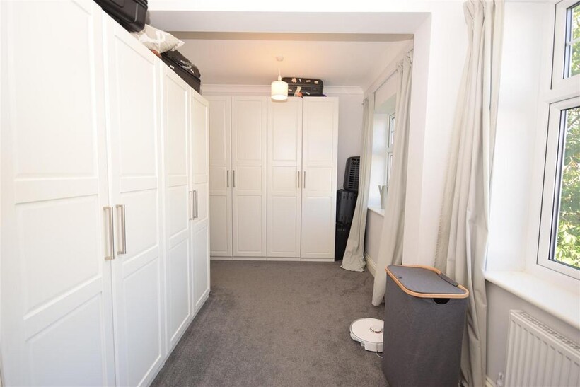 The rear garden is perfect for a family and growing children, with a patio area ideal for barbeques and al fresco dining, leading to a mature lawn and well stocked borders.
