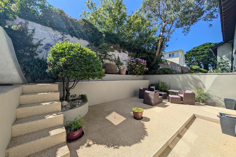 Courtyard Garden - Accessed via the dining room, the landscaped courtyard garden is stepped, with resin bound flooring, an external hose, flower beds and mature shrubs.