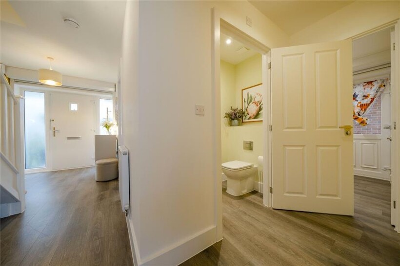 On entrance, to the right the property boasts a vast triple aspect living room spanning the depth of the property with French Doors on to the rear garden. Whilst to the left, there is a separate reception room currently used as a study, cloakroom and utility room which offers access to the car port, as well as a spacious and fully integrated ‘L-shaped’ kitchen/breakfast room with a bright conservatory style area and French doors to the rear garden.