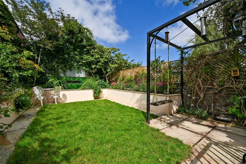 The main house is served by two beautiful private gardens, one at the front, and the other at the rear: a secluded, sunny walled garden with terrace, lawn and raised beds. This serene oasis is adorned with elegant floral displays and a tranquil water feature, offering a peaceful escape amidst the