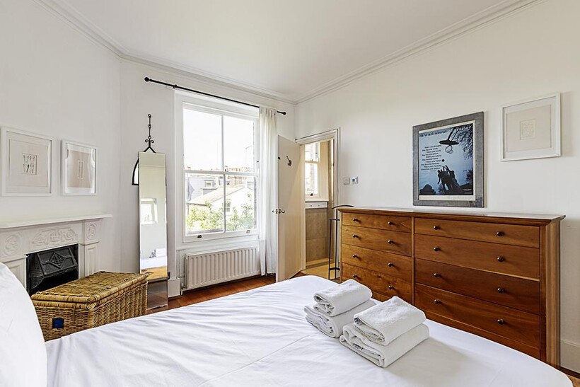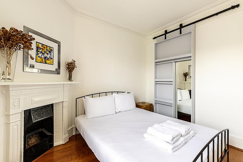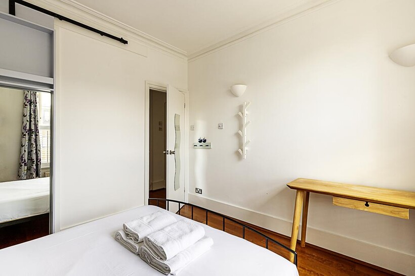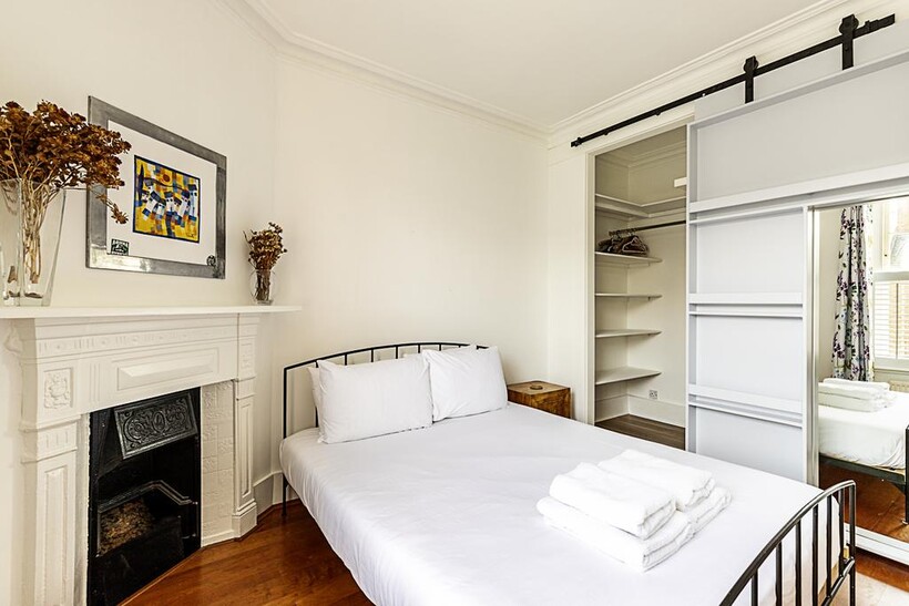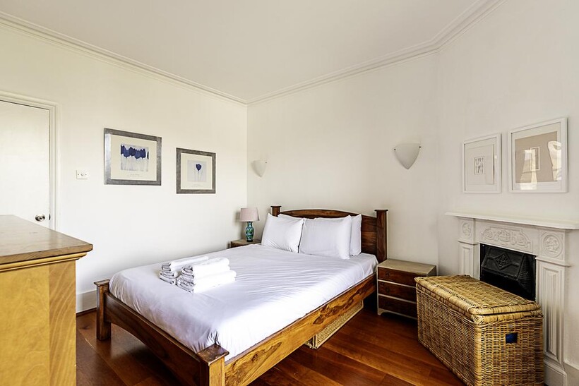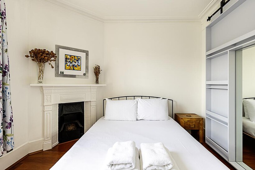 A charming and comfortable flat is within a historic mansion building dating back to 1898 awaits your visit, perfectly situated for exploring the vibrant city of London. This delightful property comfortably accommodates up to four guests. The apartment features two well-appointed bedrooms, each containing a double-sized bed, ensuring a restful night's sleep. There are also two bathrooms, both equipped with showers, with the added convenience of one being an ensuite.