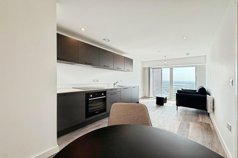Each apartment features sleek, high-spec interiors with fully fitted kitchens equipped with Bosch appliances, including an oven, induction hob, fridge-freezer, integrated dishwasher, and washer-dryer.