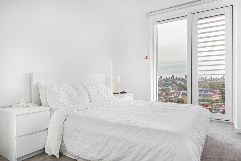 This beautifully presented 71 sq m apartment with a 7.8 sq m private balcony offers contemporary living in the sought-after Silk District, Whitechapel. Featuring a minimalist design, the property comprises two bedrooms and two bathrooms. The primary bedroom includes a stylish en-suite with walk-in shower, while the second bedroom benefits from access to the guest bathroom, complete with a bathtub.The open-plan living area is complemented by a fully fitted kitchen with integrated appliances and additional storage space. Large windows flood the home with natural light and provide captivating city views from both the living area and the balcony.