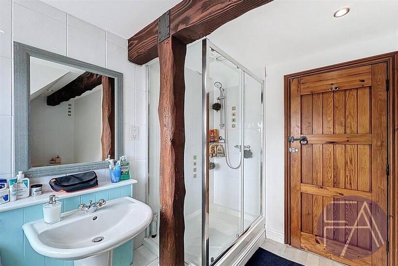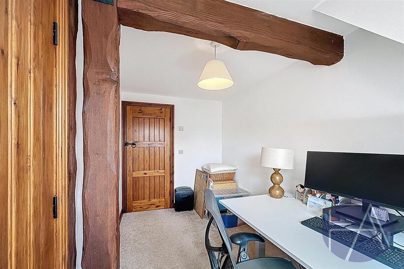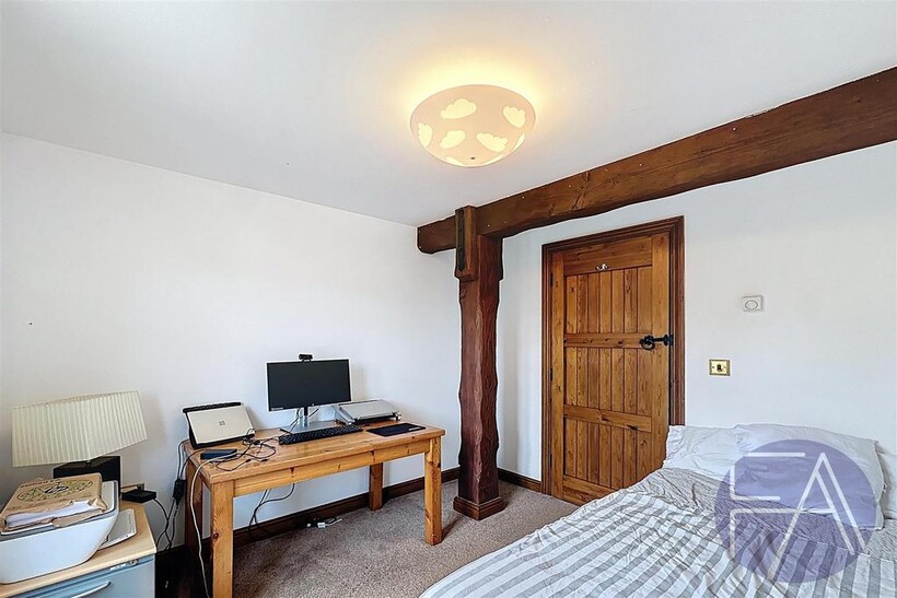 Upstairs, the property offers five bedrooms — four doubles and one single — most with built-in storage, two modern three-piece bathrooms, a dedicated office space, and an additional storage room. The office space can be converted into a sixth bedroom if needed.
