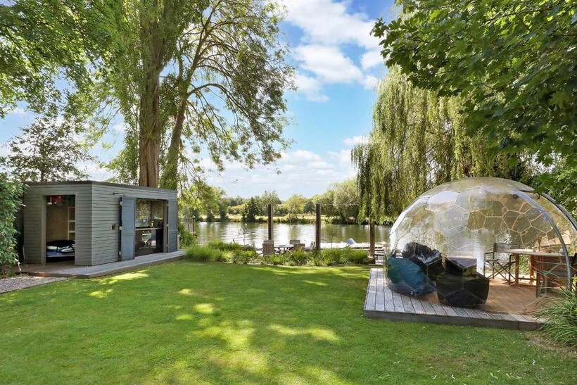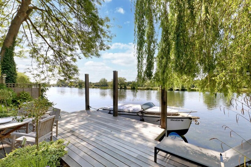 The grounds extend to the river’s edge, where a private mooring and jetty offer effortless access to the water. The west-facing garden is thoughtfully landscaped and features a boat store, riverside bath and shower, outdoor kitchen, and a geodesic dome for year-round entertaining. There is ample parking with space for numerous vehicles, a triple garage with a self-contained apartment above available at extra cost. Discreetly positioned yet close to the amenities of Bourne End, Marlow, and Beaconsfield - with excellent transport links to London – Riversdale Lodge is a striking home in a coveted setting, available now for short let.