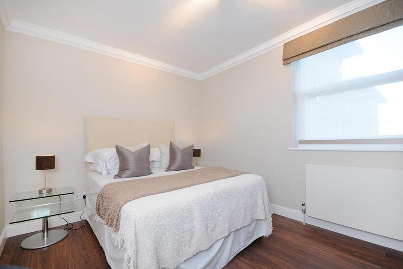 Bespoke interior designed three bedroom, two bathroom (1093sqft/101.5sqm) apartment on the seventh floor (with lift) of a recently refurbished mansion block with 24h porterage in St John's Wood. The apartment is sophisticated in interior design creating a lifestyle that is both contemporary yet relaxing, comprising German designed kitchen with Italian stone worktops and fully integrated high quality Bosch appliances, air-conditioned reception and dining room. Master bedroom with fitted wardrobes and an en-suite bathroom.