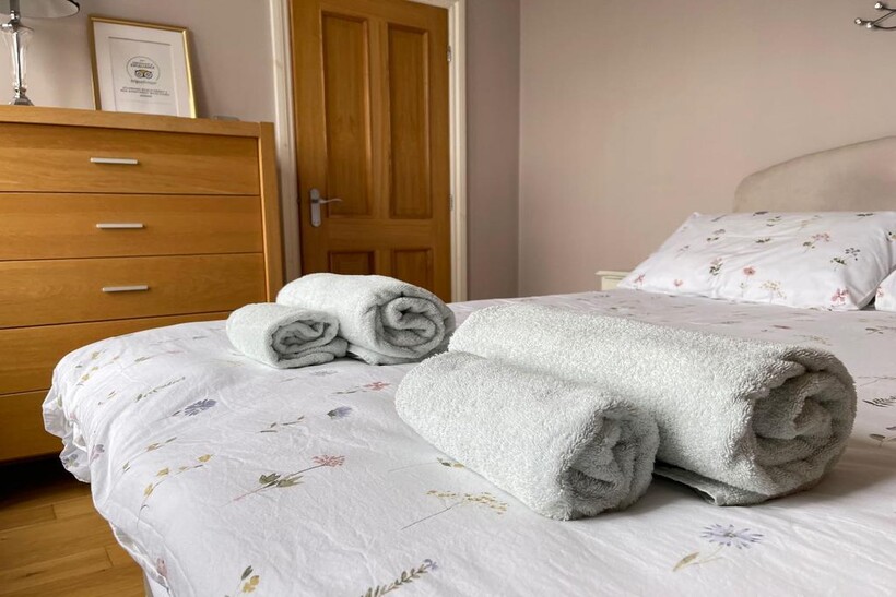 The well furnished ground floor apartment comfortably sleeps 4 people (two double beds). and a travel cot & high chair for the little one. The master bedroom offers our guests a beautiful sea view to wake up to every day.