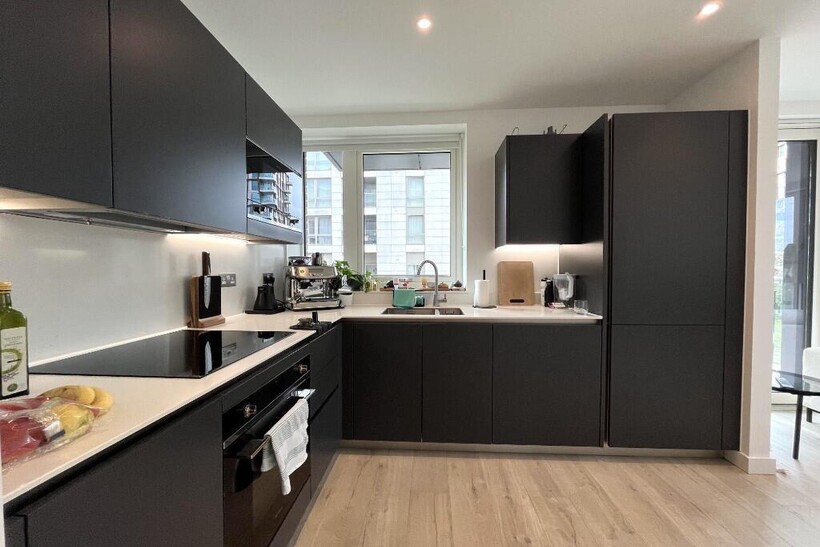 - Modern fitted kitchen with integrated appliances and premium worktops