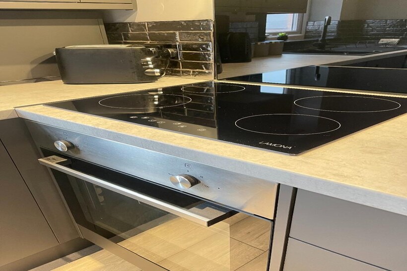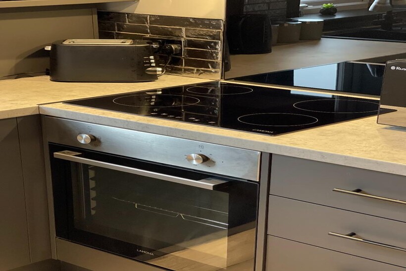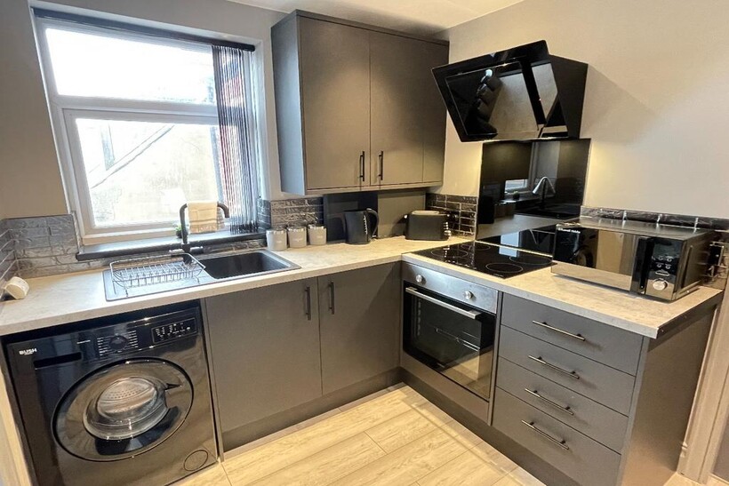 The apartment features a new modern fully equipped kitchen, complete with appliances and all the essentials to prepare delicious meals.