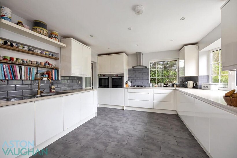 Tucked away from London Road within a smart and leafy close, this four-bedroom house is both peaceful and incredibly well-connected to the city and beyond. Neo-Georgian in style, this 1970s build has bright and spacious rooms ideal for both entertaining and family time, and the generous garden wraps right around the house to include a sweet wooded copse.As you step into this beautifully designed home, you are greeted by a spacious and welcoming entrance hall, offering ample space to hang coats and store shoes. Conveniently positioned alongside is a deep storage cupboard, providing plenty of room to keep everything organised. Additionally, there is a ground-floor WC, which is an essential feature in any family home, ensuring practicality and ease of use. From here, two doors open into different sections of the expansive reception room and kitchen. Once separate spaces, they have since been combined to create an extraordinary, sociable area perfect for modern living. The floor plan forms a large L-shape, maximising space while offering distinct areas for relaxing, formal dining, and cooking. Each zone is beautifully defined by varying floor finishes: sleek porcelain tiles in the kitchen complementing the fine-quality, timber laminate flooring that extends throughout the rest of the living areas.