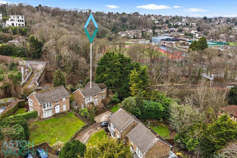 The property is set within a slight hill, giving the garden a unique tiered layout with four flat terraces. Two of these terraces are beautifully landscaped with lush lawns and bordered by vibrant flower beds, adding colour and life to the space. Between the lawns are two patio areas, ideal for dining alfresco and enjoying the outdoors. Thanks to the property's position within the close, these spaces are not overlooked, ensuring privacy and a peaceful atmosphere. The garden also includes two sheds for storing garden tools, furniture, and play equipment, as well as a charming summer house. This outdoor retreat has been thoughtfully fitted with power points and lighting, making it perfect for use as an outdoor office or a quiet sanctuary for reading and relaxation. One of the unique features of this property is the wooded area that runs along the north/east side of the house, providing a magical and private play area for children or a serene spot to unwind amidst nature.