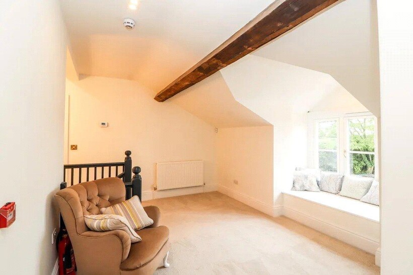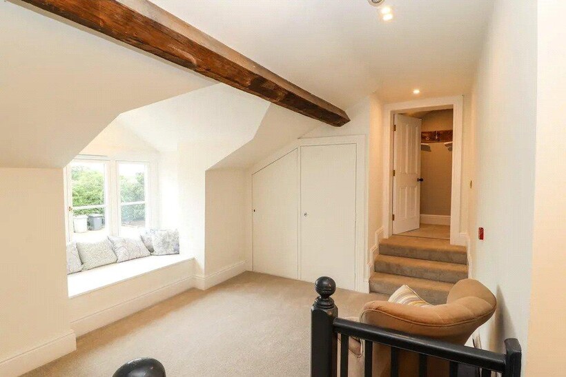 To the first floor is an ideally placed window seat offering a peaceful place to sit and enjoy the countryside views, as well as a utility cupboard, housing space for a washing machine and tumble dryer.