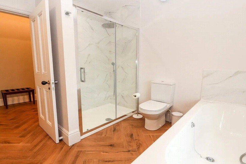 The first of five bedrooms can be found on the ground floor; a well presented room with a sleek en-suite shower room, where you can start each day with a refreshing soak under the rainfall shower, while a handy cloakroom, off the reception hall, completes the layout.