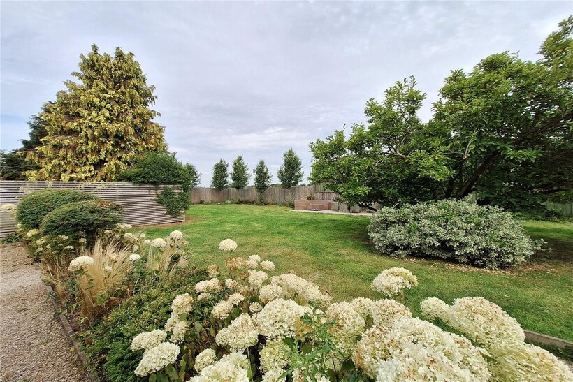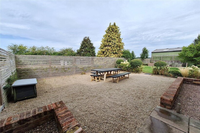 The garden enjoys a charming rural setting, offering a peaceful retreat surrounded by open countryside. A well-maintained lawn provides a lush green centrepiece, ideal for relaxation or play, while neatly placed seating areas are ideal for al fresco dining. A dedicated boules court adds a touch of leisure and sociability, perfect for friendly games on sunny afternoons, and a specific area set aside to acccommodate a hot tub. The layout blends open space with intimate corners, making the garden equally suited to quiet contemplation or gatherings with family and friends.