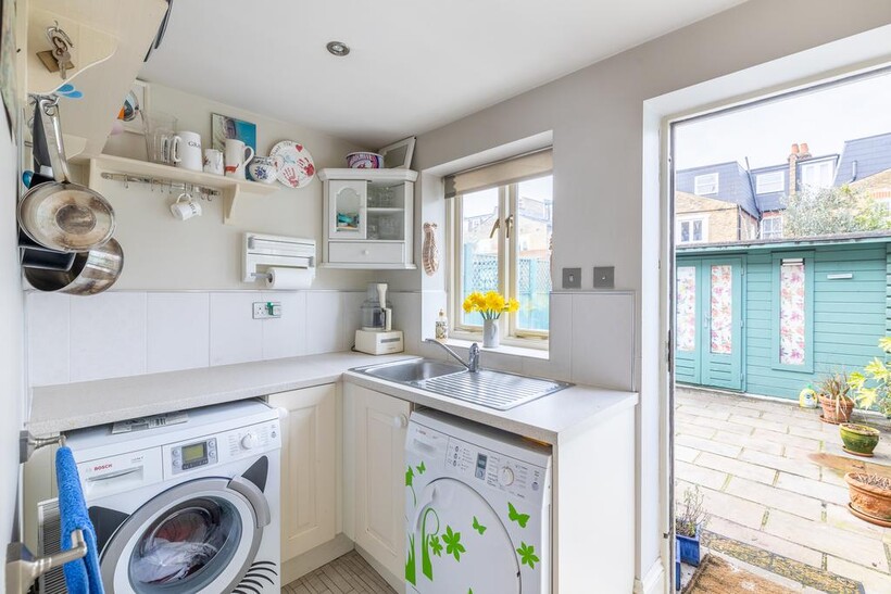 A beautiful three bedroom family home within close proximity to Bishops Park and the River Thames.The property, which is presented furnished, consists of a large double reception with a bay window providing an abundance of natural light leading onto an open plan kitchen/family room with doors onto a bright patio. The first floor consists of 2 double bedrooms all with ample storage and family bathroom, the top floor consists of a large master bedroom with en-suite and standalone shower. The property further benefits from a cloakroom and a garden room.
