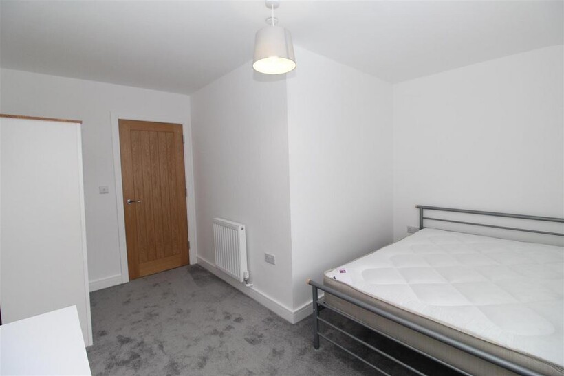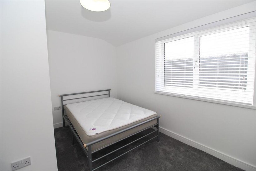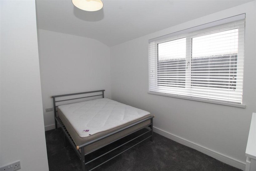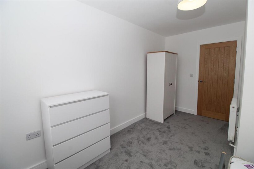 Located to the front of the property, the generously sized double bedroom is flooded with natural light from a large window. It comes complete with a double bed, mattress, stylish chest of drawers, and wardrobe, while still offering ample space for additional furniture or personal touches.
