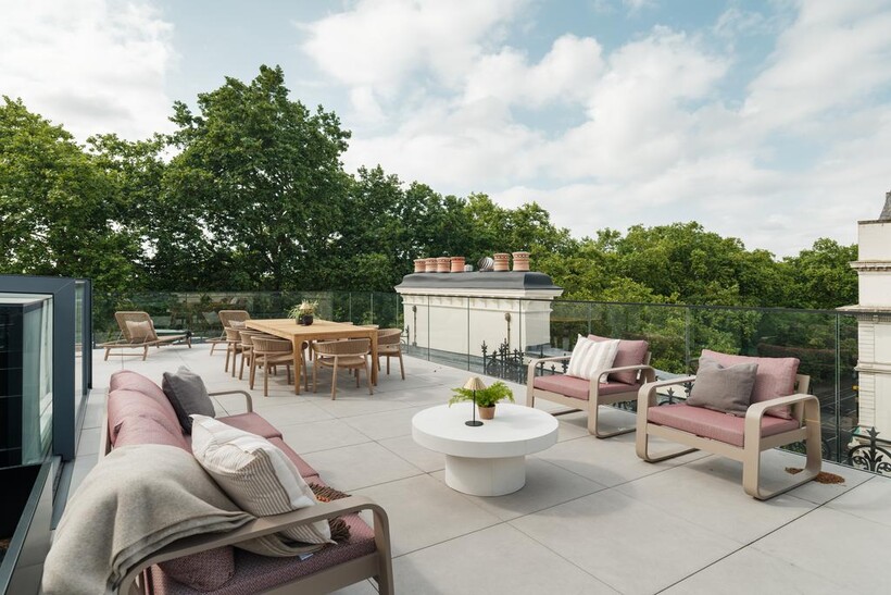 Crowning this spectacular home is a breathtaking 70m2 private roof terrace - a rare and remarkable feature in Central London. Thoughtfully furnished and surrounded by greenery, it offers unobstructed panoramic views across Hyde Park, making it the ultimate outdoor space for entertaining, relaxing, or dining al fresco.