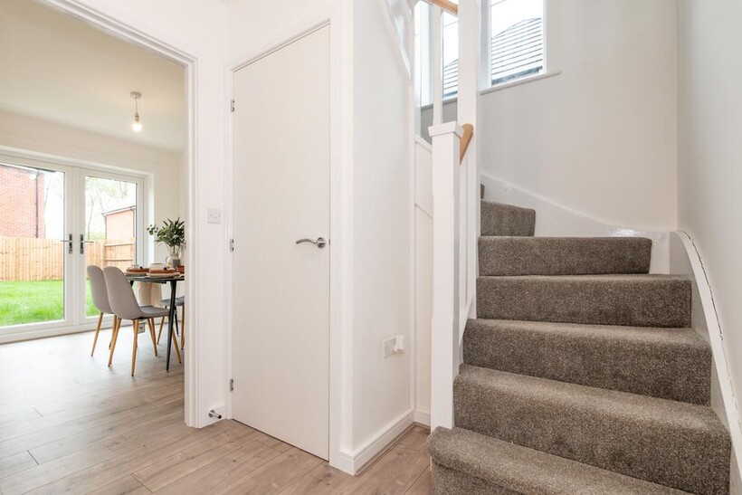 The welcoming central hallway of the Grantham sits in between the living room and the kitchen. A house designed with you in mind, the spacious lounge provides the perfect area to relax, whilst the dining/kitchen area provides a great place to spend time and entertain with its French windows opening on to the garden. A WC is conveniently situated off the hallway, completing the downstairs.Upstairs, the house has a large master bedroom with fitted, mirrored wardrobes, and a further two bedrooms. A stylish family bathroom with a separate bath and shower provides the best of both worlds, whilst a store room on the landing provides a space to store bits and pieces.
