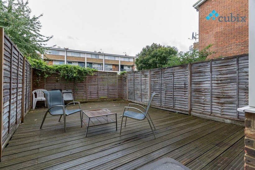 The property comprises a large reception room with a dining area, a modern eat-in kitchen, four double bedrooms, a bathroom with a separate W/C, and a private decked garden.