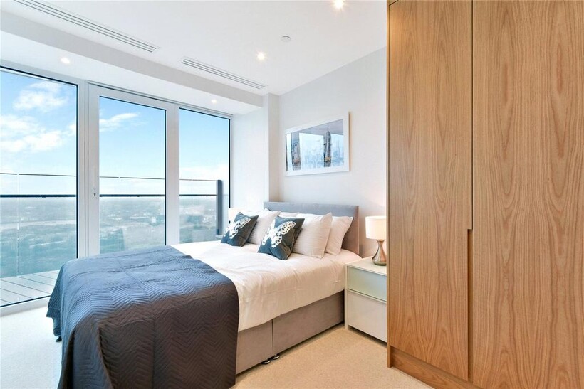 Beautifully presented 2 double bedroom, 2 bathroom apartment to rent on the 35th floor of this modern tower block. This property affords a huge private balcony, wood flooring, an open plan kitchen, access to a gym and concierge service. Offered furnished.