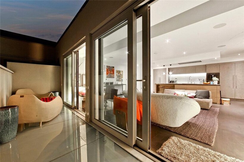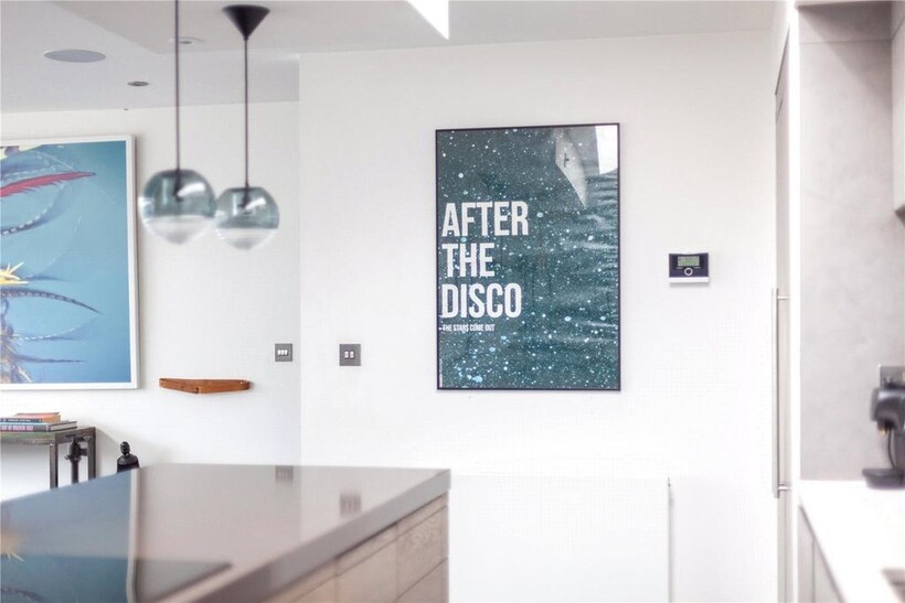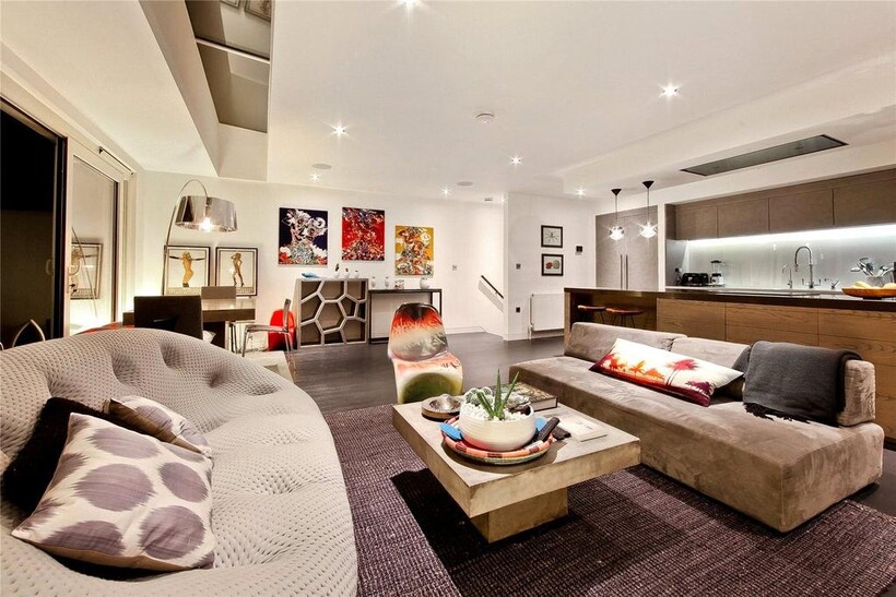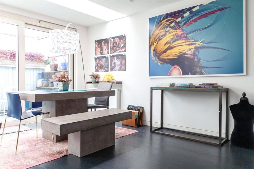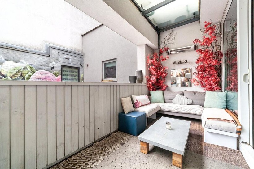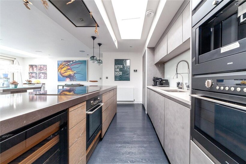 Offering approximately 1,485 square feet of stylish and contemporary living space, the entrance floor comprises three generously proportioned bedrooms (one with built-in wardrobes and the primary with a walk-through closet leading to the en-suite), one of two private terraces - accessible via two bedrooms, and two contemporary bathrooms. The top floor offers a stunning and bright open-plan living space ideal for entertaining, boasting a luxurious bespoke kitchen with built-in coffee maker and appliances. The apartment further benefits from floor-to-ceiling windows. The art deco theme from downstairs is continued throughout the top floor which leads out onto a sizable roof terrace with uninterrupted City views to the north-east.