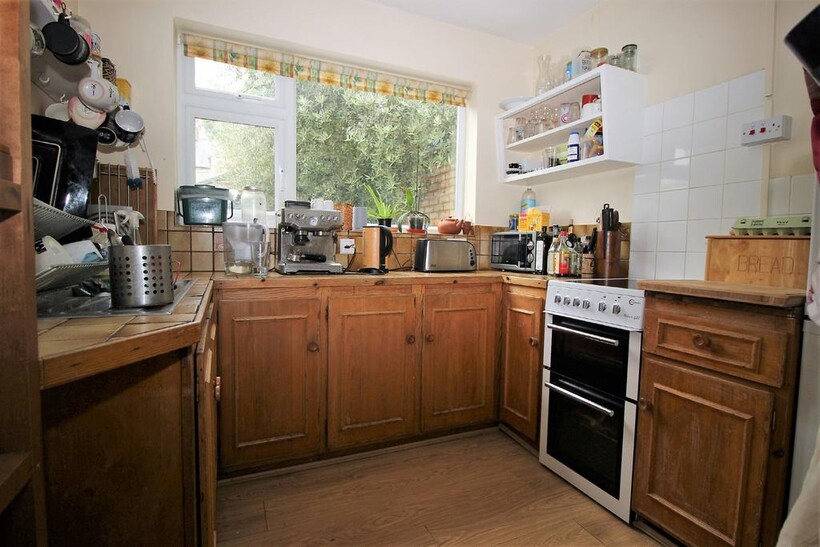 Built in wooden units, cooker, fridge freezer. Washing machine is located in the ground floor WC/ utility room.