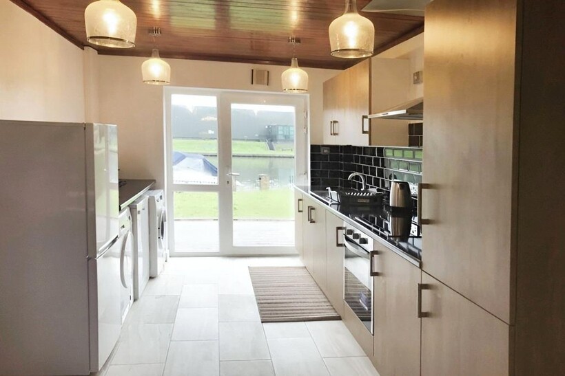 There is a modern, fully equipped kitchen with tumble dryer, dishwasher, fridge, freezer, washing machine and all home ware provided.