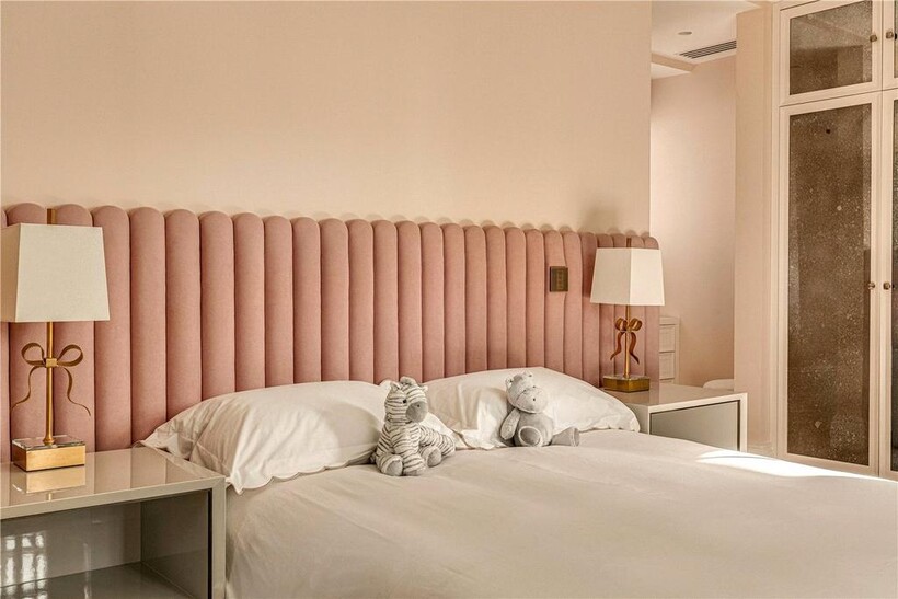 Ascending to the sixth floor, two additional generously sized en suite bedrooms feature bespoke built-in storage and