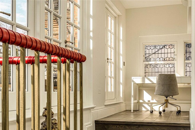 Upon entering the apartment, an impressive feature staircase sets the tone for the home’s sophisticated aesthetic.