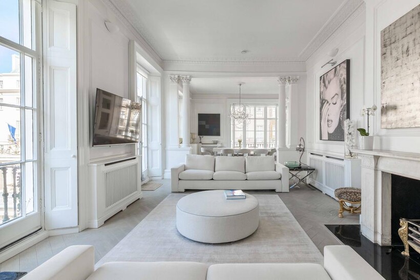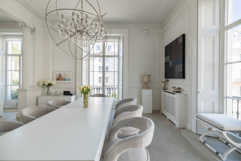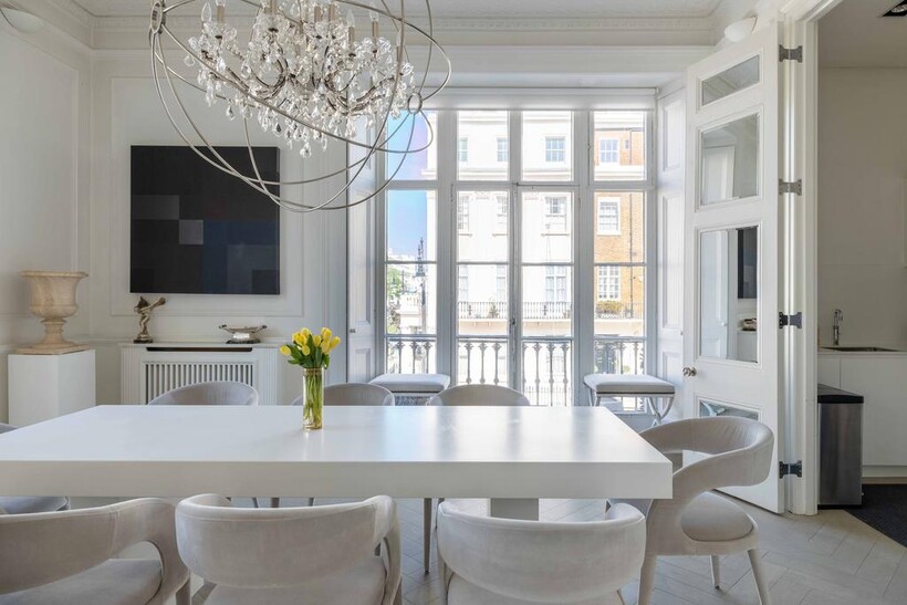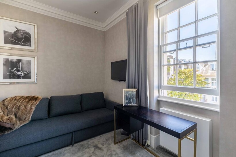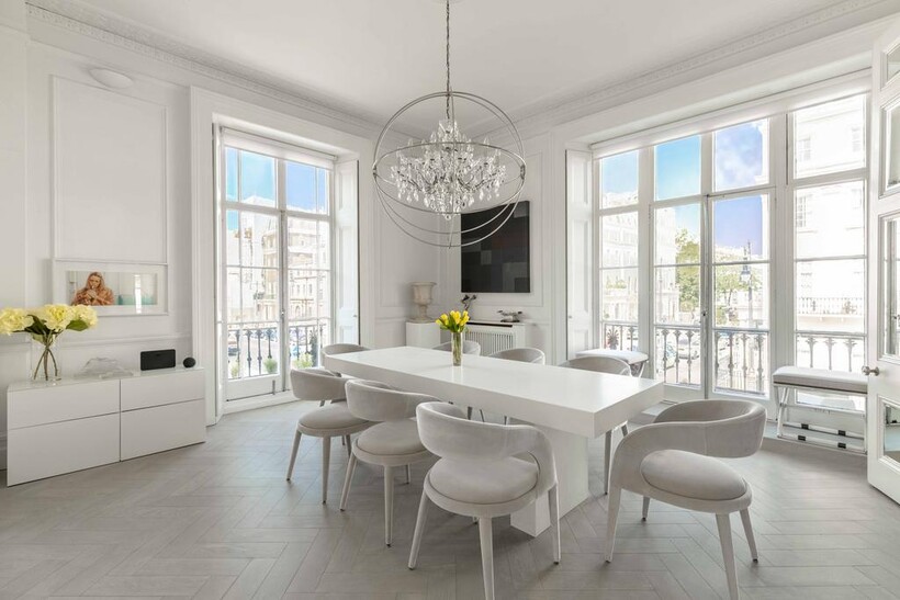 A stunning two bedroom lateral apartment located on the first floor of an end of terrace building on the exclusive Eaton Place.The property, which is presented fully furnished is available exclusively for short term rentals featuring a spacious reception room filled with an abundance of natural light, a dining area perfectly set up for entertaining followed by a top of the range kitchen. The property features a large master bedroom with extensive storage and en-suite shower room followed a guest bedroom / study and a bathroom with bathtub.