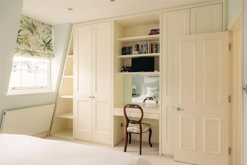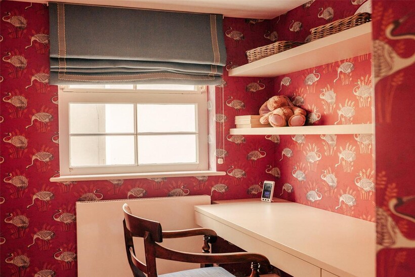 The first floor contains a pair of bedrooms with a shared bathroom, as well as a study on the half-landing. The second floor contains a principal bedroom with a well-proportioned ensuite bathroom and considerable built-in storage space.